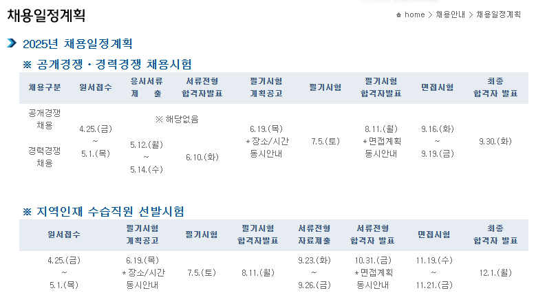 필기시험 합격자 발표: 2025년 8월 11일(월)